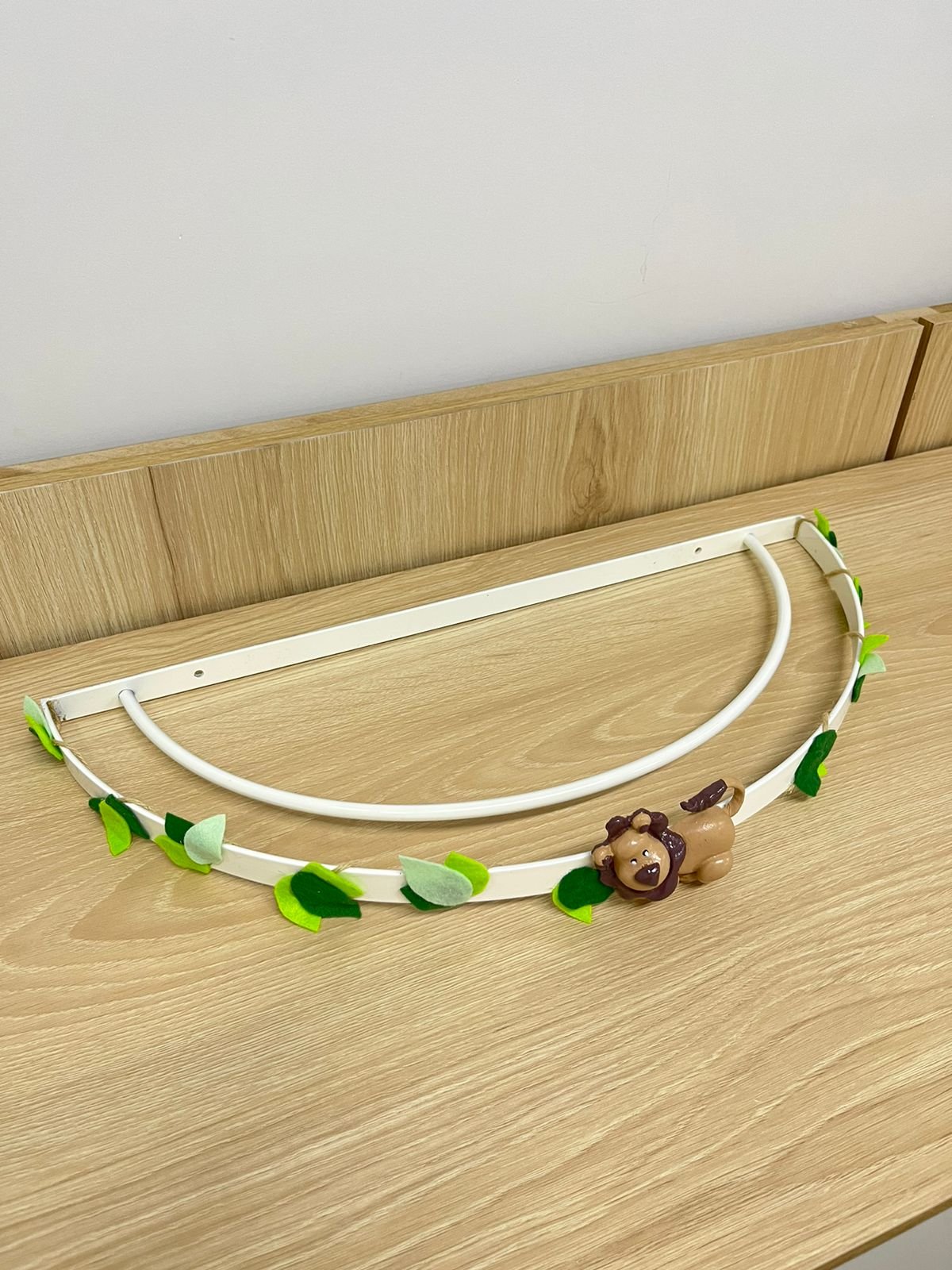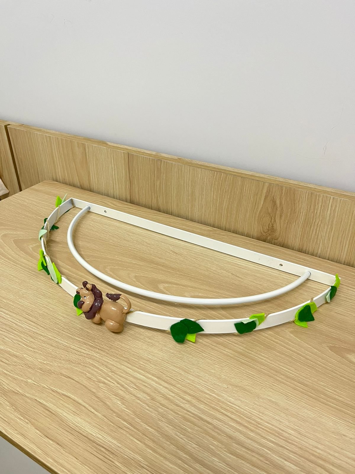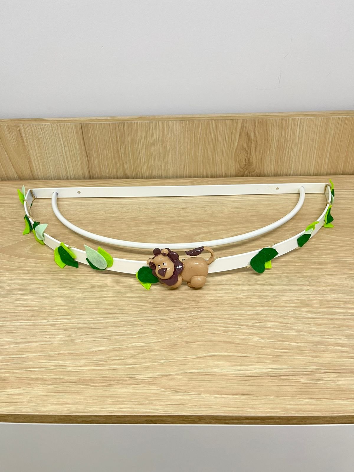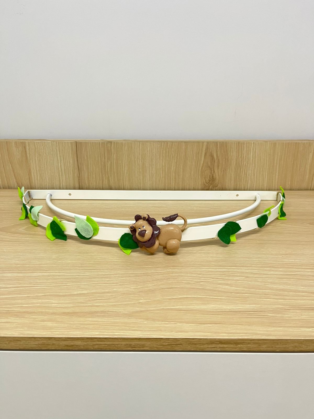 Cor do dossel branco com leão marrom e folhas verde