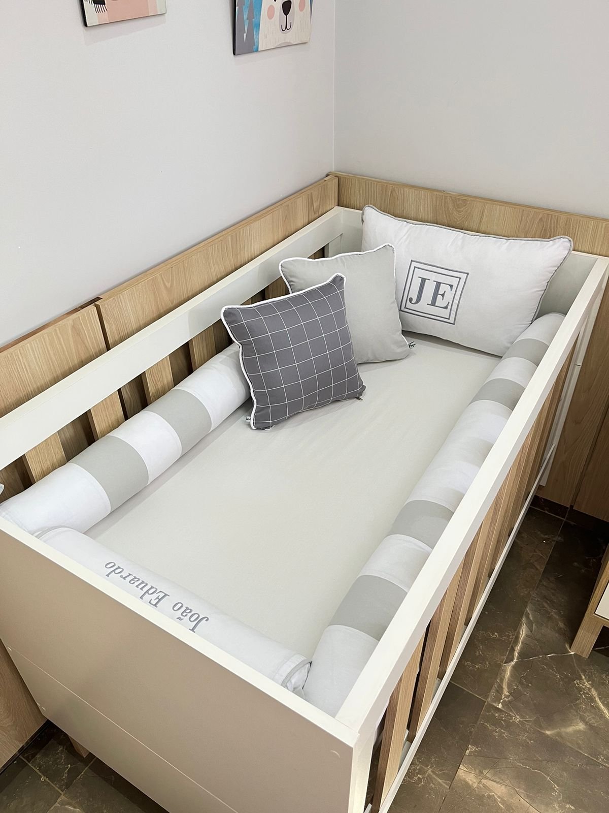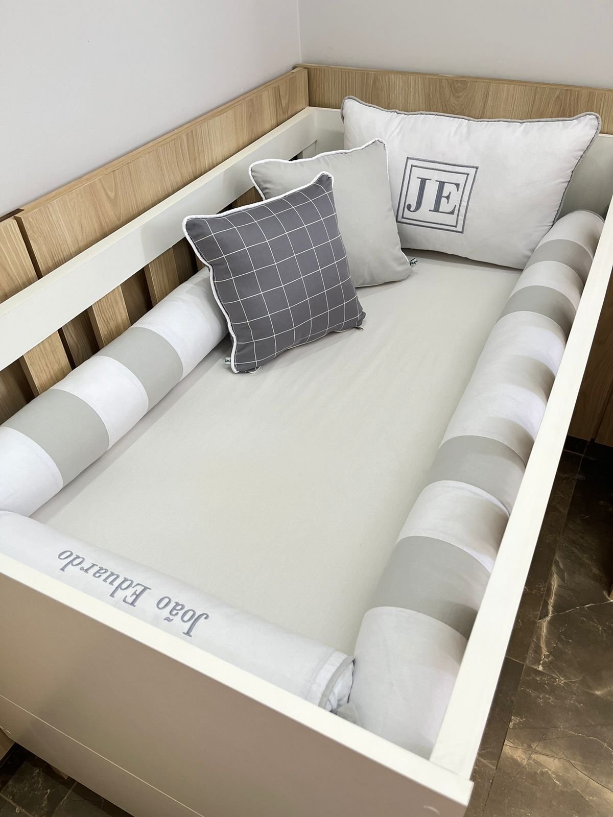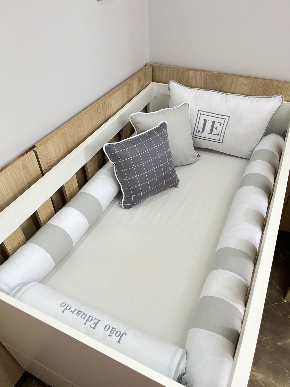 Esse kit berço tem uma identidade forte para as mamães que gostam dos tons neutros que trazem luxo e sofisticação.