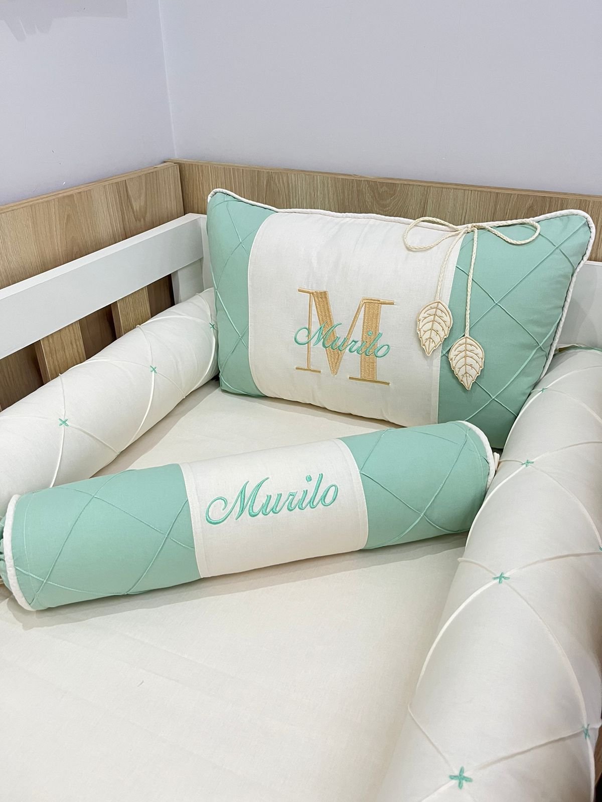 1 almofada de cabeceira com bordado, detalhe na costura e tag de folha ( zipper na lateral)