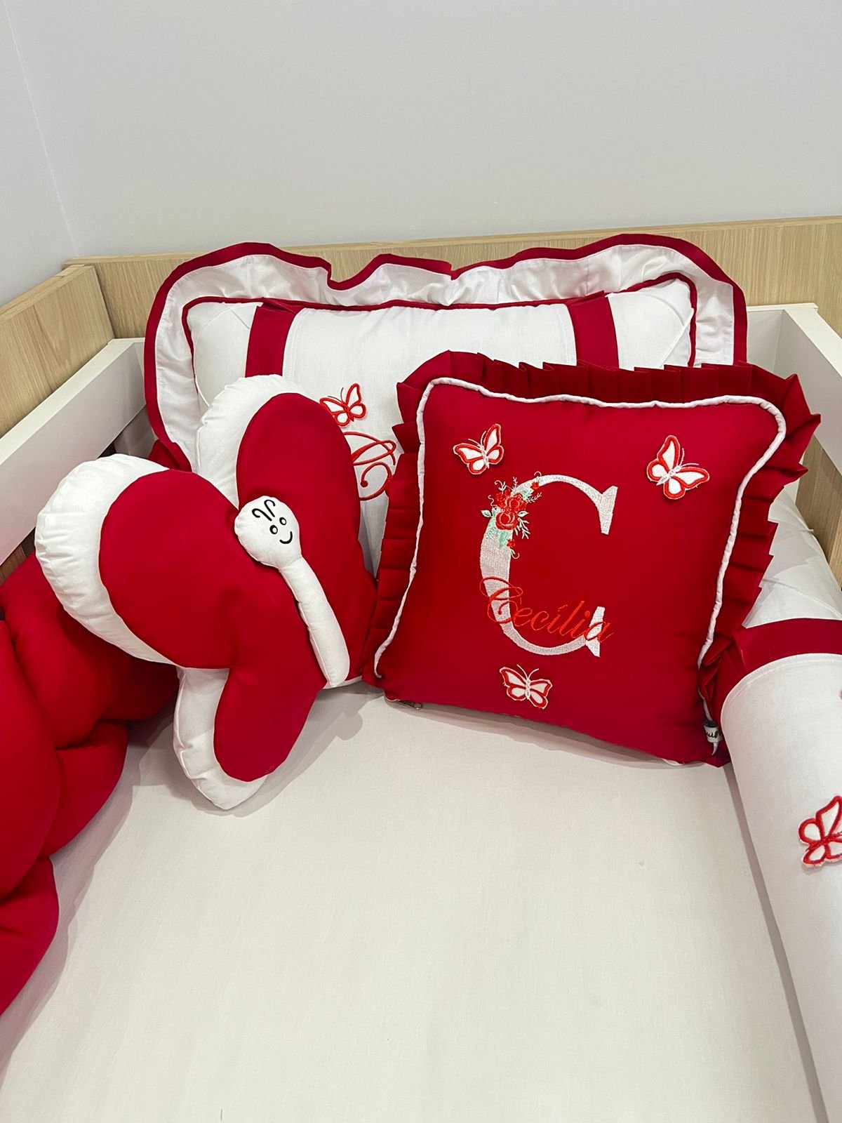 1 almofada de cabeceira com babado, bordado e detalhes na costura e borboleta 3D ( zipper na lateral)