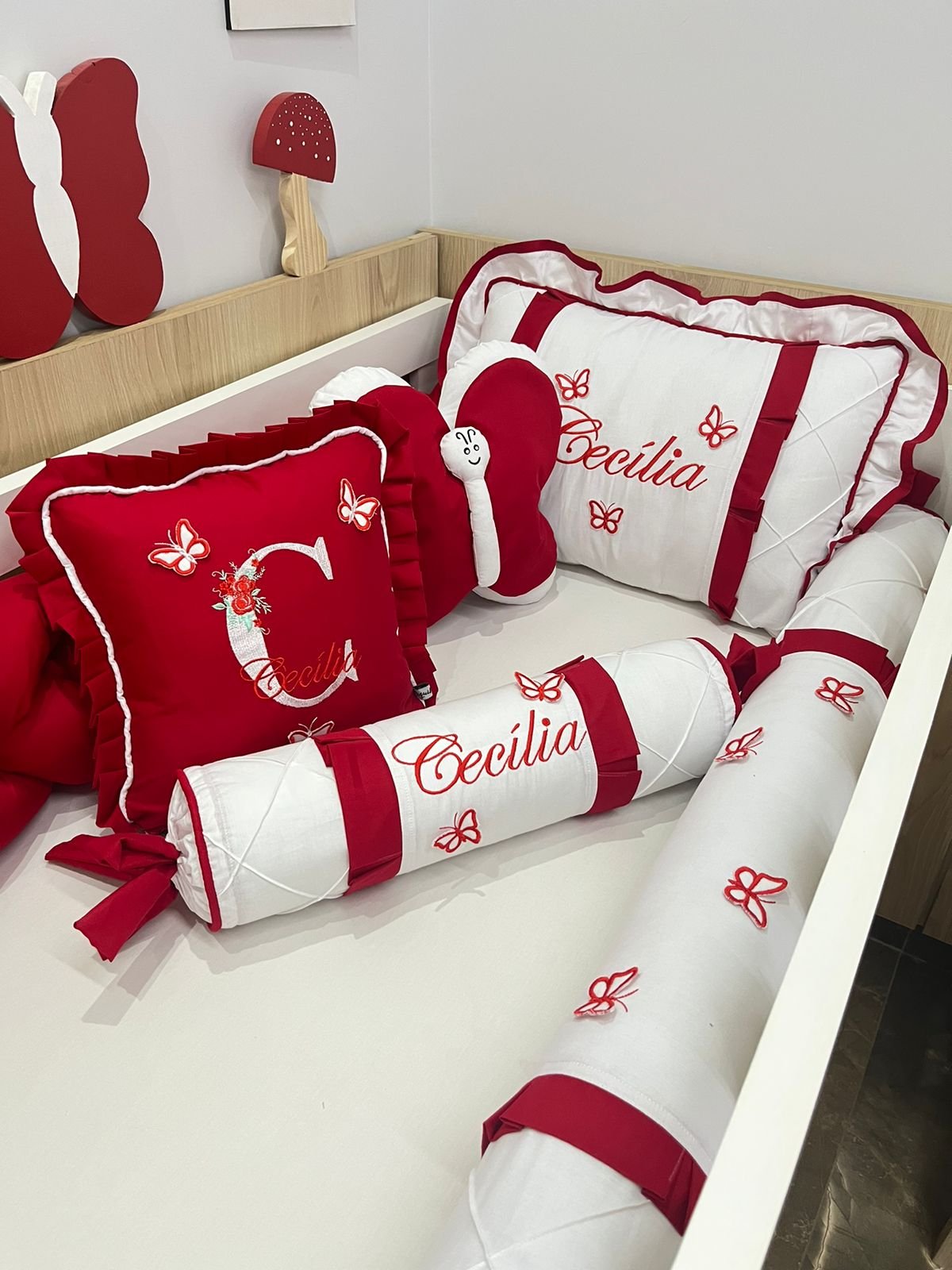 1 rolinho peseira com babado, bordado, borboleta 3D e detalhes na costura.