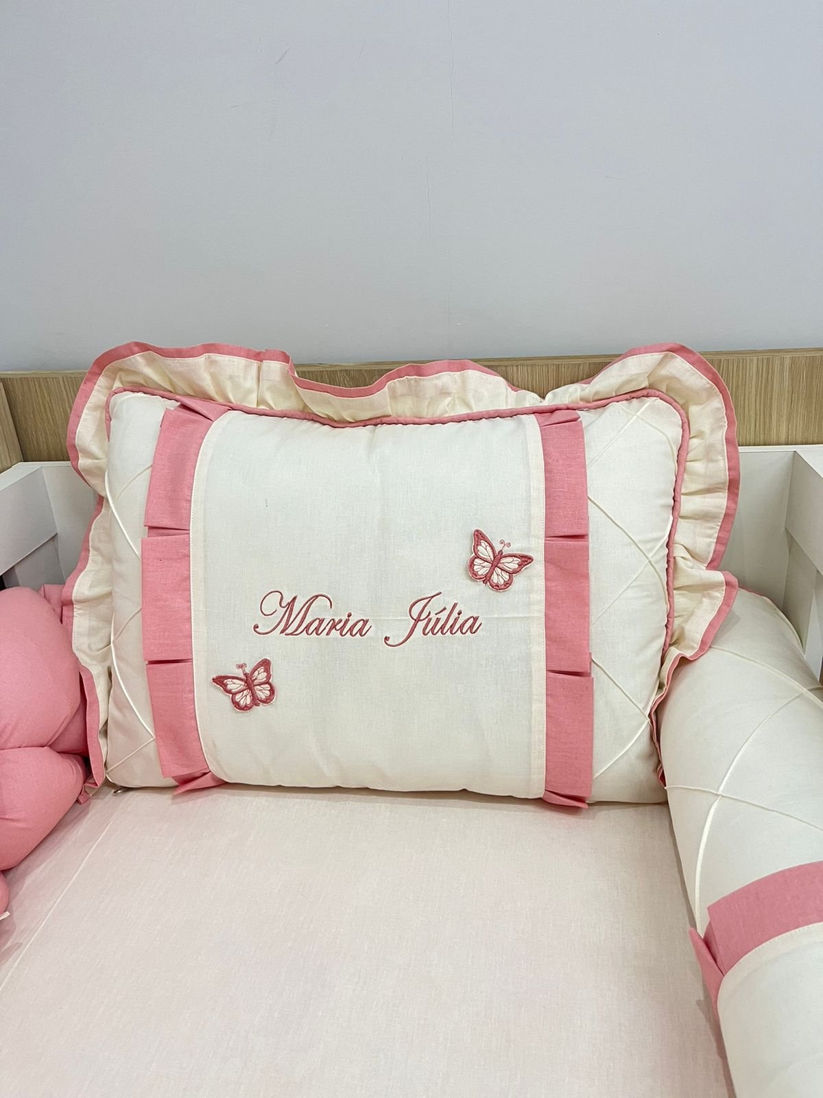 1 almofada cabeceira com babado, bordado e borboletas 3D (com zipper)