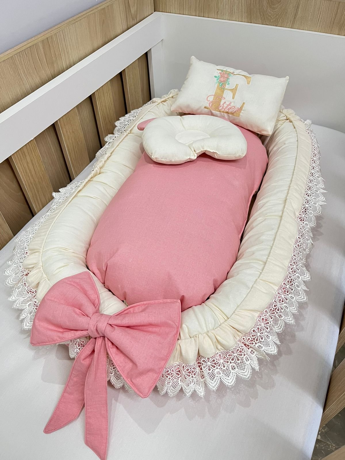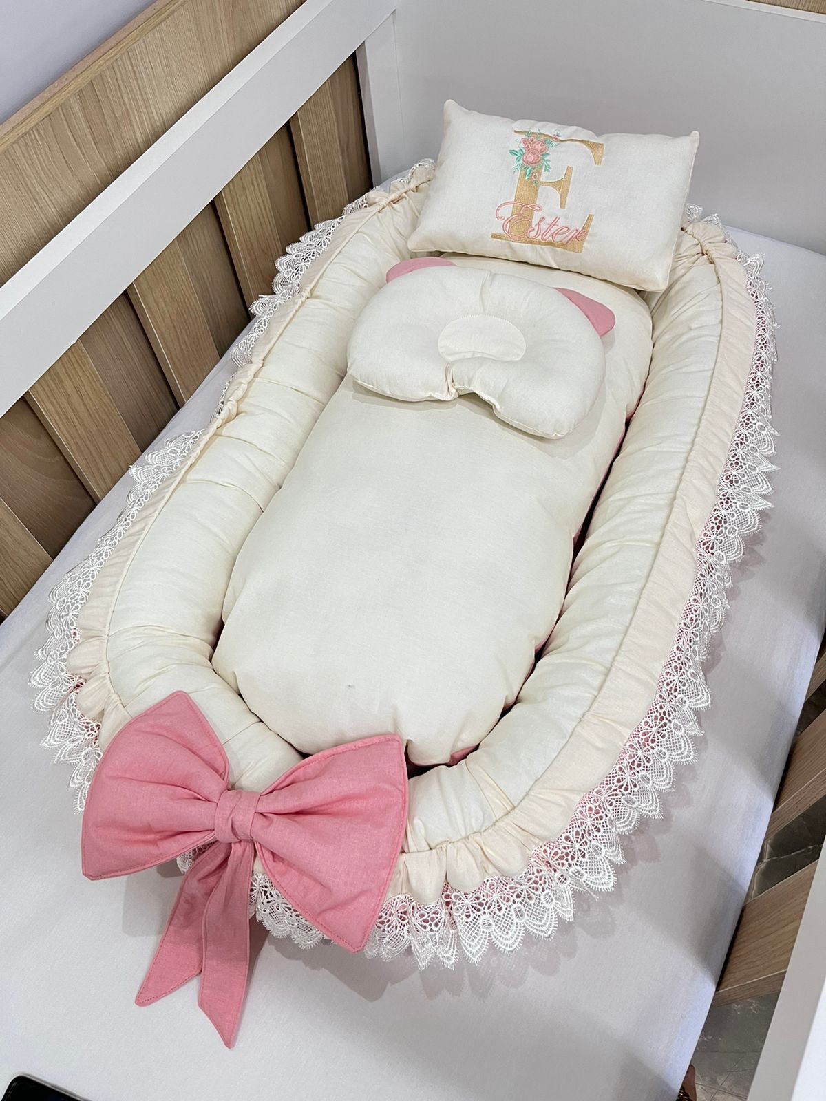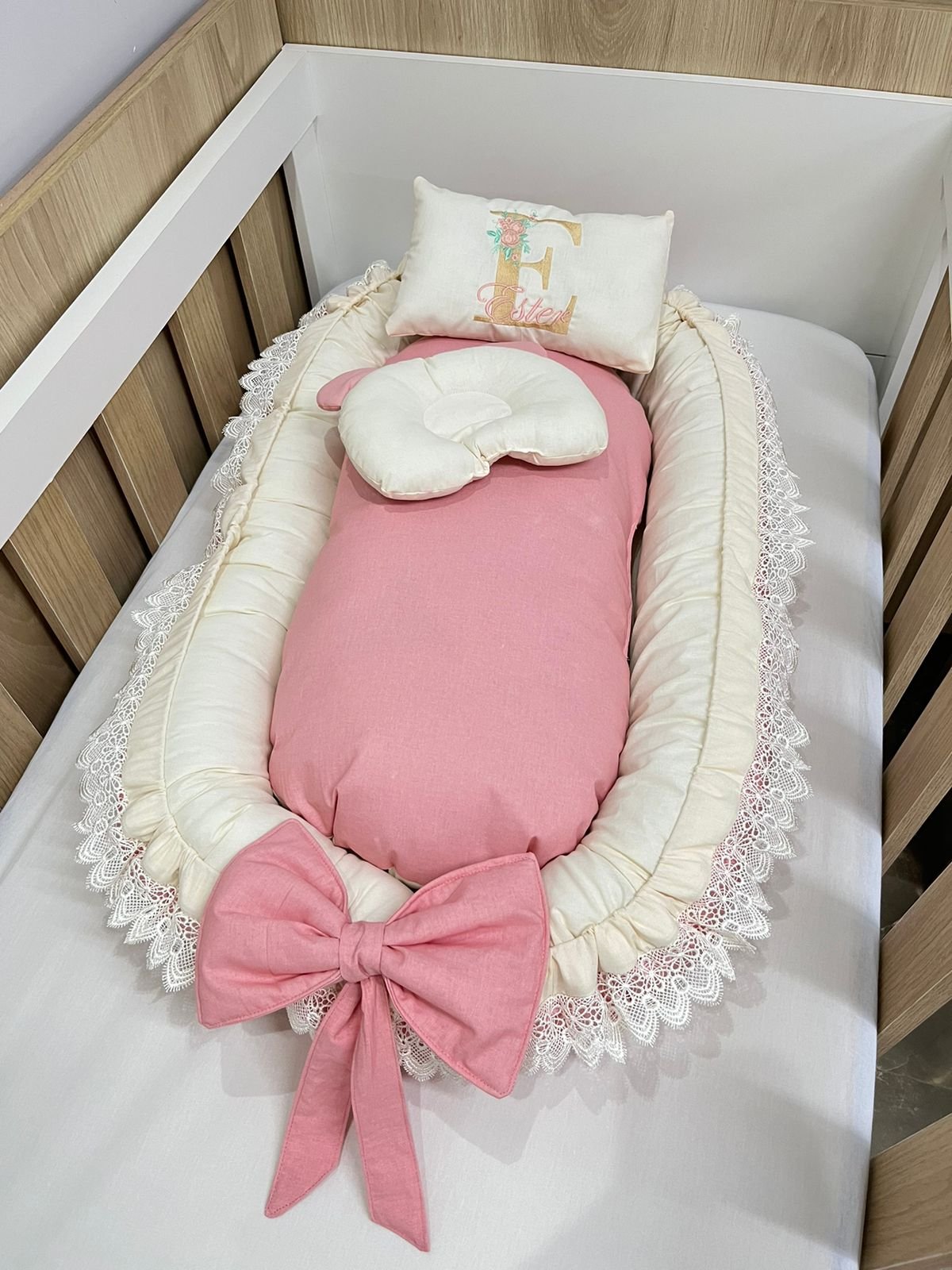 Ninho redutor de berço com tecido 100% algodão.